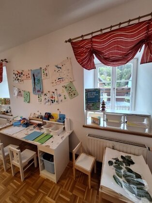 Die großzügigen, hellen Räume wurden liebevoll und kindgerecht ausgestattet, altersgerechte Spiele- und Kreativmaterialien warten vor Ort auf die Kinder. Ein Kinderspielplatz so wie Spazierwege sind in unmittelbarer Nähe.