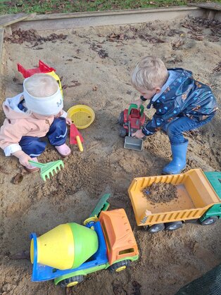 Die Gemeindetagesmutter Andrea erzählt: "In der Wohnung haben wir viele Spielmaterialien für unterschiedliche Interessen und Altersstufen. Wenn es das Wetter zulässt, verbringen wir gerne Zeit draußen am Spielplatz oder sind auf Erkundungstour.